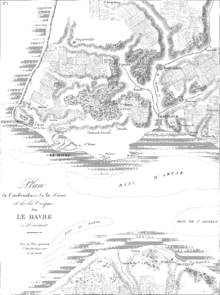 La fonction de défense du Havre est réaffirmée et la modernisation du port débute au xvie siècle, sur ordre du cardinal de Richelieu, gouverneur de la ville : l'arsenal et le bassin du Roy sont aménagés, les remparts sont renforcés et une forteresse est construite. C'est dans cette dernière que Mazarin fait emprisonner les princes frondeurs, Longueville, Conti et Condé. Au début du règne de Louis XIV, Colbert décide de rénover les infrastructures portuaires et militaires : les travaux durent 14 ans. En 1669, le ministre inaugure le canal du Havre à Harfleur, appelé aussi « canal Vauban ».